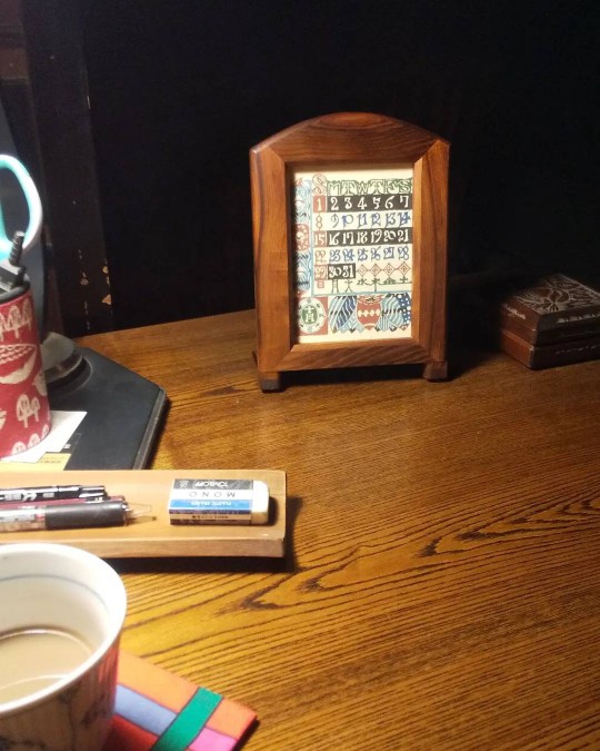 今年は卓上用カレンダーが収まる額を作ってみました。